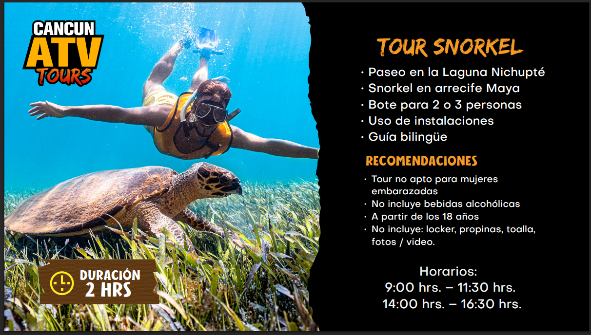 Tour de snorkel que incluye paseo en la Laguna Nichupté y snorkel en el arrecife Maya.