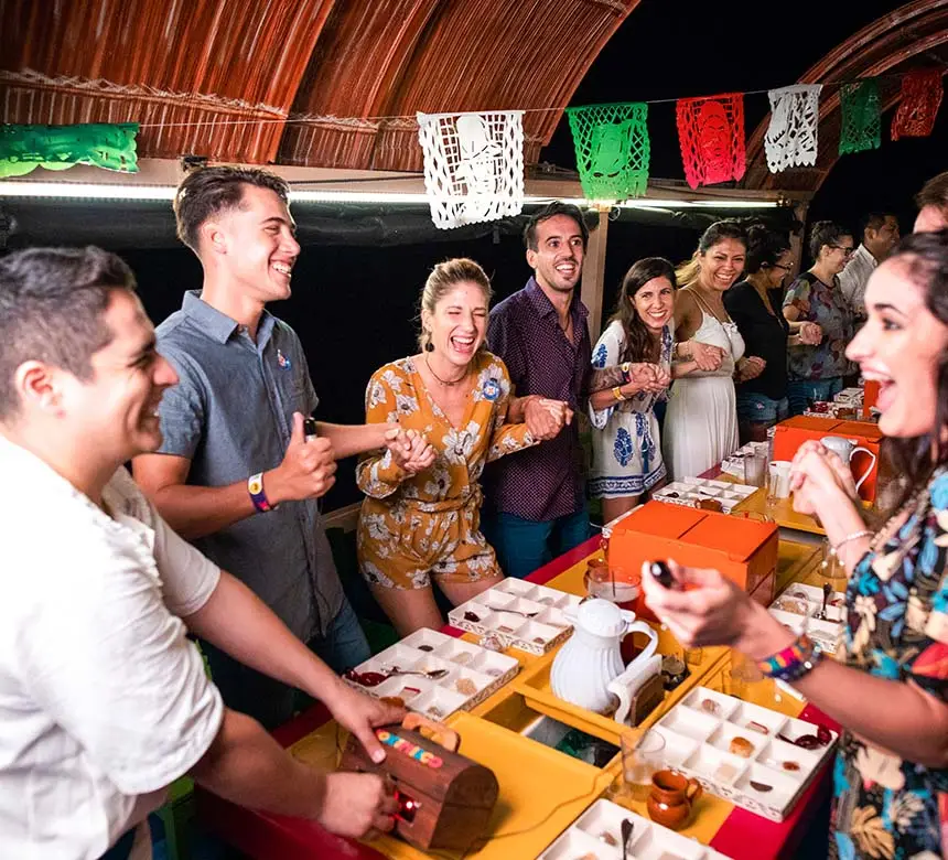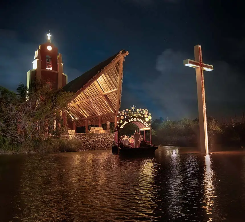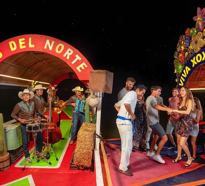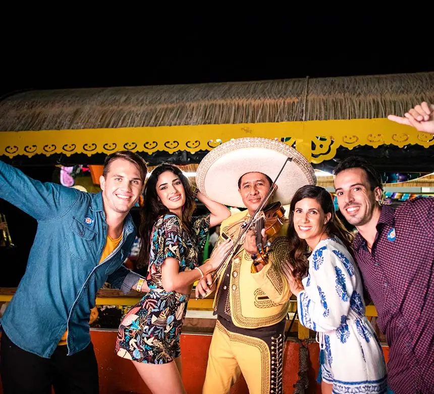 Las fiestas mexicanas en Playa del Carmen y Cancún son las mejores, y sobre el agua ¡mejor! Súbete a una colorida trajinera que te llevará en un tour en trajineras por los canales de Xoximilco mientras degustas lo mejor de la cocina mexicana, y entras en ambiente con la barra libre de cervezas y tequila, en compañía de nuevos amigos, música de mariachi y un divertido animador. Entrégate al espíritu de una noche mexicana en Cancún y Playa del Carmen en Xoximilco.