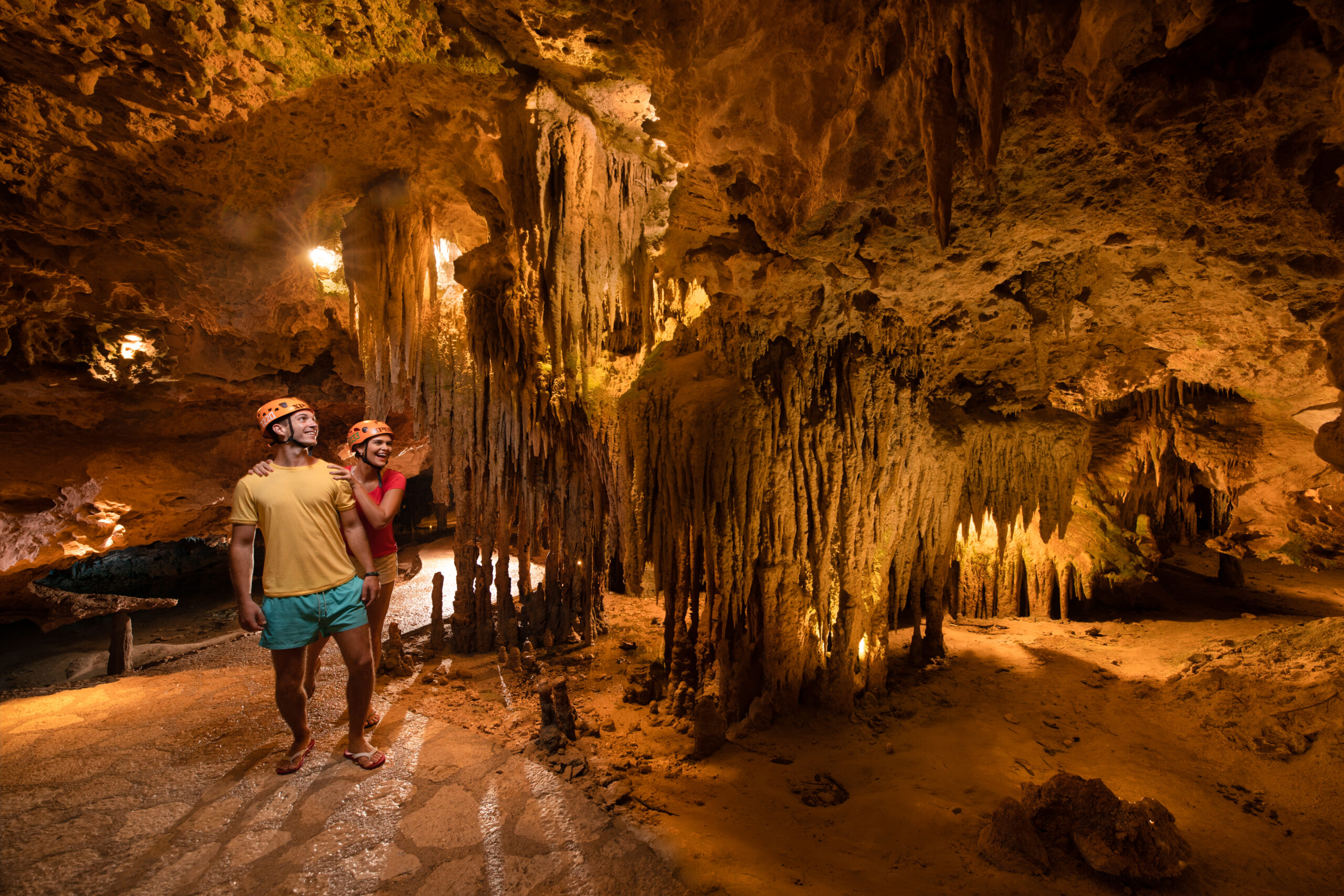 Reta las alturas con las catorce tirolesas, que incluye la más alta de todo el destino. En la superficie, manejarás un vehículo anfibio en la selva, sobre puentes y entre cavernas. Vive la emoción de deslizarte en balsa por nuestro Toboganxote, un tobogán 5 en 1 que termina en una alberca de olas*. Debajo del planeta, realizarás un recorrido en balsa y nadando por los ríos de estalactitas, además de adentrarte en una expedición subterránea para revelar los secretos que se ocultan debajo del planeta.